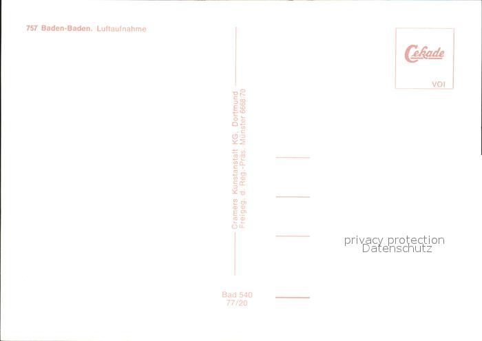 72580367 BADEN-BADEN BW Luftaufnahme postalisch nicht gelaufen Erhaltung siehe scans [KathaD79] KatCode: 11110008211000