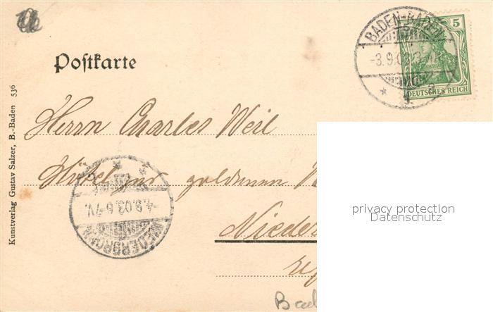 43492368 BADEN-BADEN BW Marktplatz Neues Schloss postalisch gelaufen Erhaltung siehe scans [KathaD81] alte Postkarte Kath Katcode 11110008211000