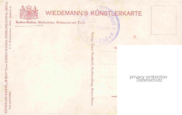 34142803 BADEN-BADEN BW Markurbahn Restaurant mit Turm Wiedemanns Kuenstlerkarte postalisch nicht gelaufen Erhaltung siehe scans [FriedD77] KatCode: 11110008211000