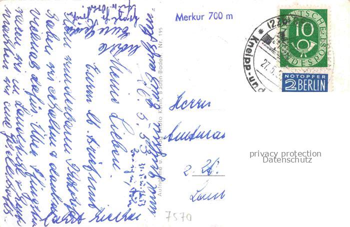 74042798 BADEN-BADEN BW Merkur Berghotel Gaststaette Fliegeraufnahme postalisch gelaufen Erhaltung siehe scans [WerneD78] alte Postkarte Wern Katcode 11110008211000