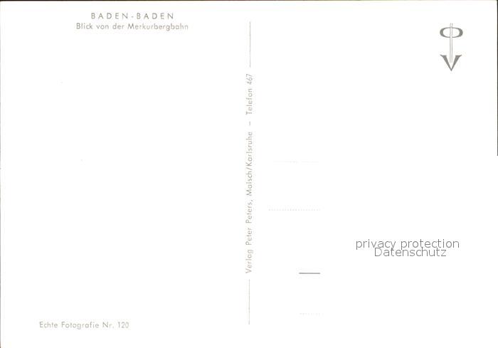 71909105 BADEN-BADEN BW Merkurbergbahn postalisch nicht gelaufen Erhaltung siehe scans KatCode: 11110008211000