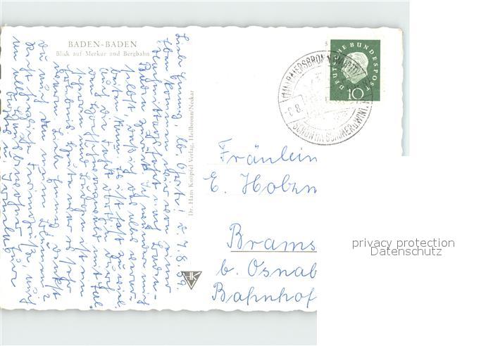 72302302 alte Postkarte BADEN-BADEN BW mit Merkur und Bergbahn postalisch gelaufen Erhaltung siehe scans KatCode: 11110008211000