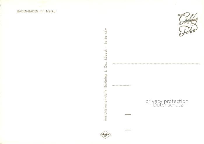 73761161 BADEN-BADEN BW mit Merkur postalisch nicht gelaufen Erhaltung siehe scans [WerneD78] Wern Katcode 11110008211000