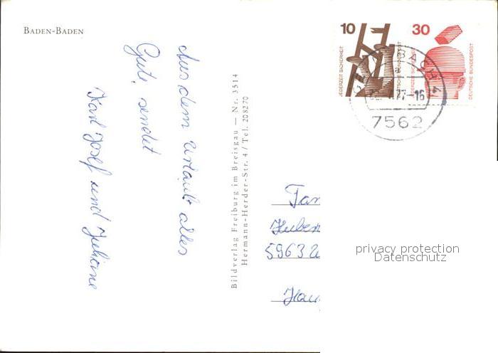 72583809 alte Postkarte BADEN-BADEN BW mit Pferdekutsche postalisch gelaufen Erhaltung siehe scans [LiesaD40] KatCode: 11110008211000
