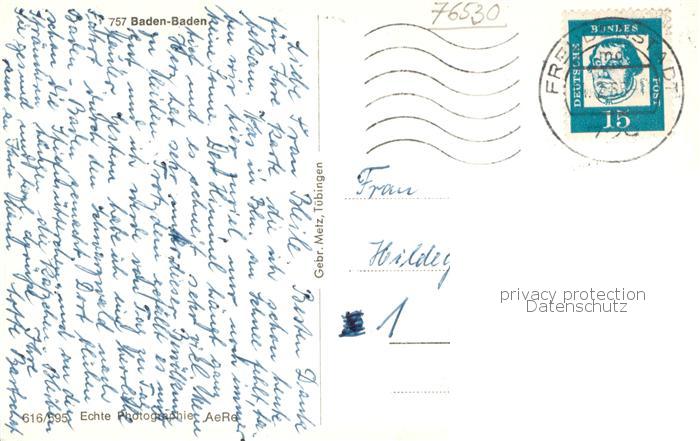 73761569 BADEN-BADEN BW Panorama postalisch gelaufen Erhaltung siehe scans [FriedD77] alte Postkarte Frie Katcode 11110008211000
