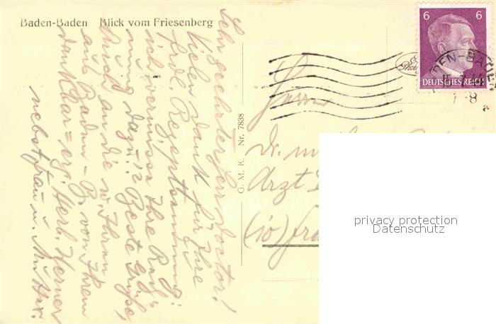 72786848 alte Postkarte BADEN-BADEN BW Panorama Blick vom Friesenberg postalisch gelaufen Erhaltung siehe scans [FriedD77] KatCode: 11110008211000