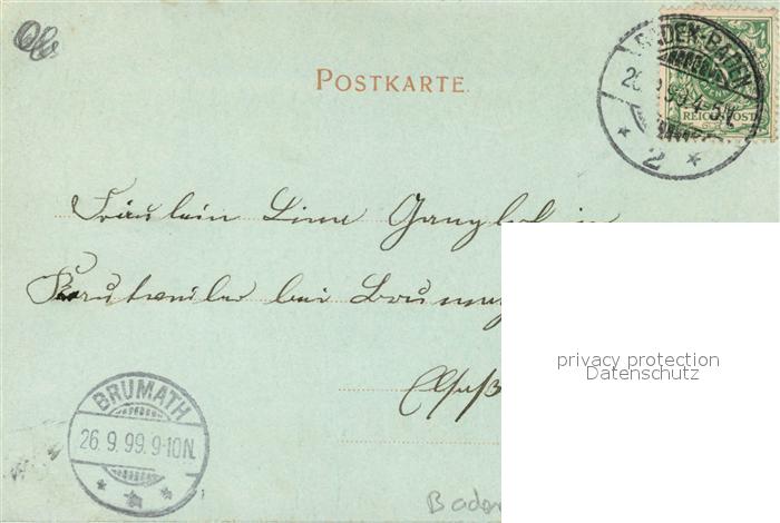 43495477 BADEN-BADEN BW Panorama vom Michaelsberg Mondschein postalisch gelaufen Erhaltung siehe scans [KathaD81] alte Postkarte Kath Katcode 11110008211000