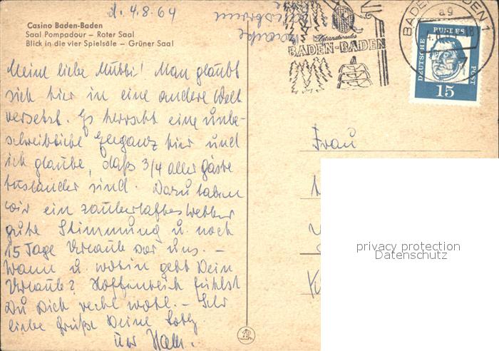 72141475 alte Postkarte BADEN-BADEN BW Pompadour Saal Roter Saal Gr?ner Saal Blick in die Spiels?le postalisch gelaufen Erhaltung siehe scans KatCode: 11110008211000