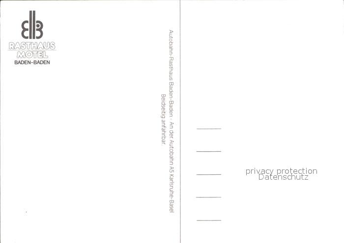 72241705 BADEN-BADEN BW Rasthaus Motel Baden-Baden postalisch nicht gelaufen Erhaltung siehe scans KatCode: 11110008211000