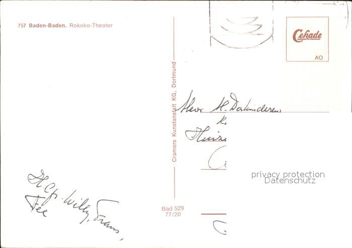 72452115 BADEN-BADEN BW Rokoko Theater postalisch nicht gelaufen Erhaltung siehe scans KatCode: 11110008211000