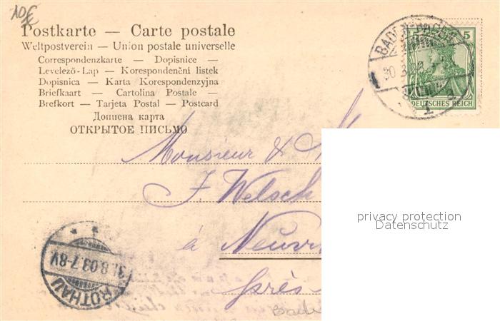 43492307 BADEN-BADEN BW Schloss postalisch gelaufen Erhaltung siehe scans [KathaD81] alte Postkarte Kath Katcode 11110008211000