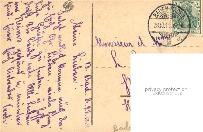 43495253 BADEN-BADEN BW Schloss Favorite postalisch gelaufen Erhaltung siehe scans [KathaD81] alte Postkarte Kath Katcode 11110008211000