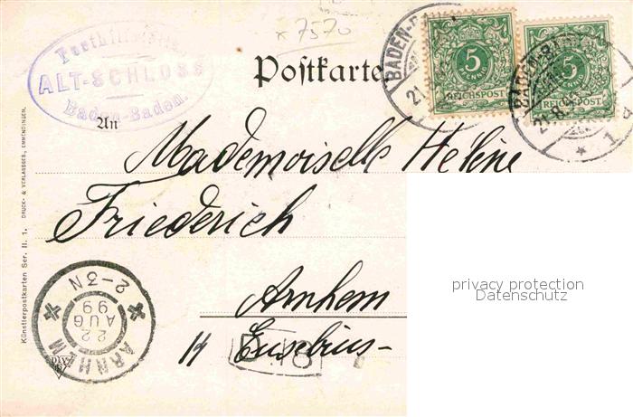 42880378 alte Postkarte BADEN-BADEN BW Schloss Hohenbaden postalisch gelaufen Erhaltung siehe scans [KathaD81] KatCode: 11110008211000
