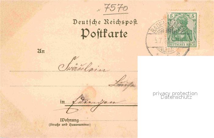 42877413 alte Postkarte BADEN-BADEN BW Schloss Solms postalisch gelaufen Erhaltung siehe scans [KathaD81] KatCode: 11110008211000