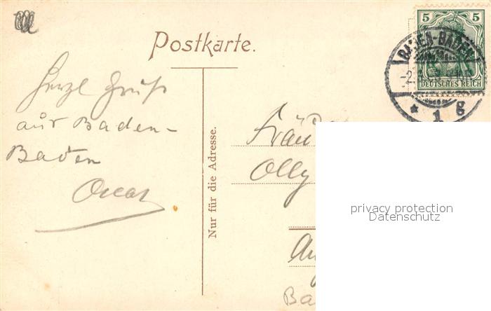 43505283 BADEN-BADEN BW Schwarzwaelder Spinnstube postalisch gelaufen Erhaltung siehe scans [KathaD81] alte Postkarte Kath Katcode 11110008211000