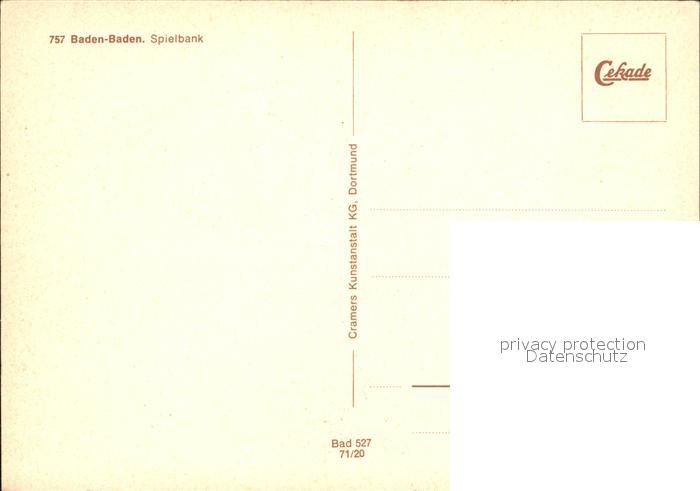 72413758 BADEN-BADEN BW Spielbank postalisch nicht gelaufen Erhaltung siehe scans KatCode: 11110008211000