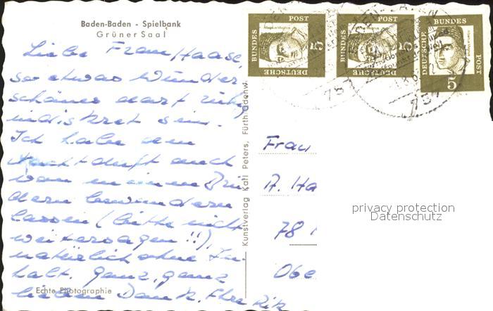 71894013 alte Postkarte BADEN-BADEN BW Spielbank Gruener Saal postalisch gelaufen Erhaltung siehe scans KatCode: 11110008211000