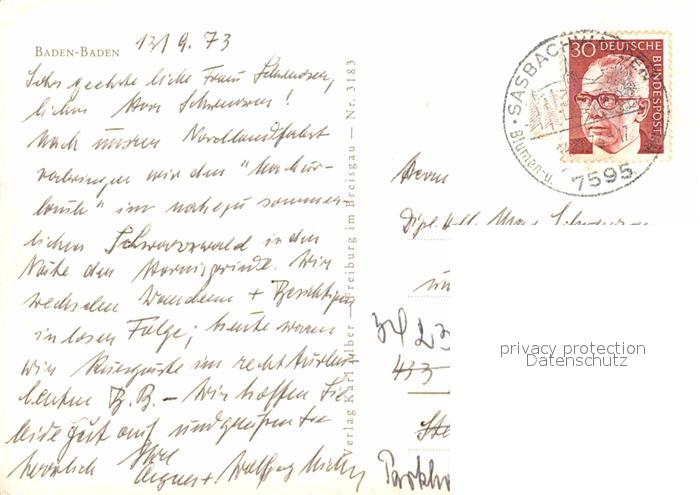 72846134 alte Postkarte BADEN-BADEN BW Stadtbild mit Kirche postalisch gelaufen Erhaltung siehe scans [FriedD77] KatCode: 11110008211000