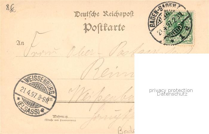 43495284 BADEN-BADEN BW Stadtpanorama postalisch gelaufen Erhaltung siehe scans [KathaD81] alte Postkarte Kath Katcode 11110008211000