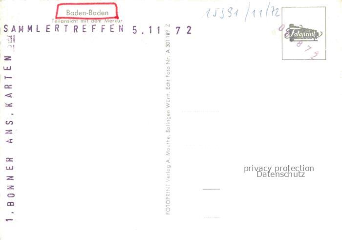 74076365 BADEN-BADEN BW Teilansicht mit dem Merkur postalisch nicht gelaufen Fliegeraufnahme Erhaltung siehe scans [FriedD77] Fliegeraufnahme Frie Katcode 11110008211000