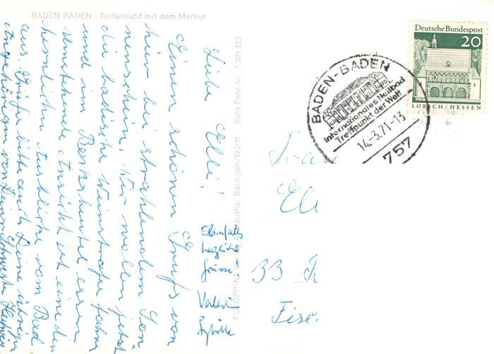 73903793 BADEN-BADEN BW Teilansicht mit dem Merkur postalisch gelaufen Fliegeraufnahme Erhaltung siehe scans [FriedD77] Fliegeraufnahme alte Postkarte Frie Katcode 11110008211000