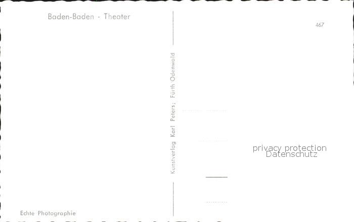 72463572 BADEN-BADEN BW Theater postalisch nicht gelaufen Erhaltung siehe scans KatCode: 11110008211000