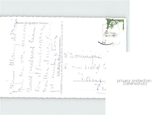 72077736 alte Postkarte BADEN-BADEN BW Totalansicht mit Merkur postalisch gelaufen Erhaltung siehe scans KatCode: 11110008211000