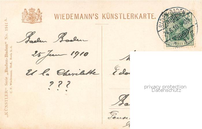 73750329 BADEN-BADEN BW vor der Friedrichshoehe C.F.wiedermann Nr.1941 A postalisch gelaufen Erhaltung siehe scans [IrynaD87] alte Postkarte Iryn Katcode 11110008211000