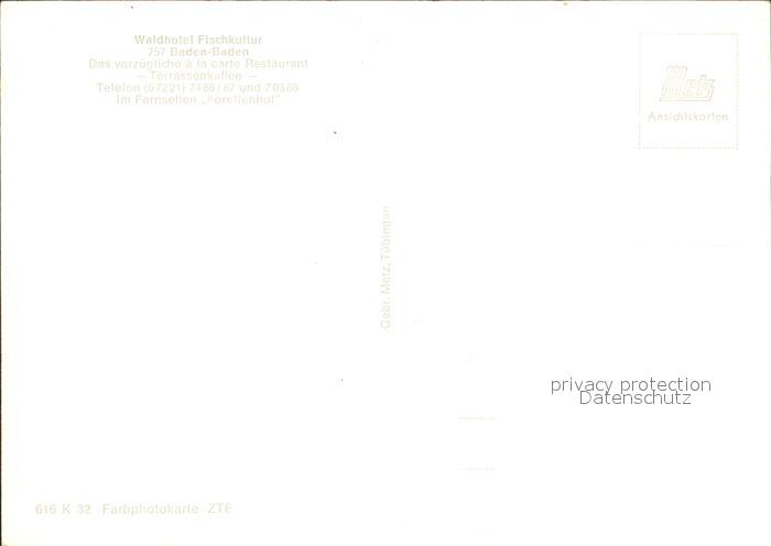 72048196 BADEN-BADEN BW Waldhotel Fischkultur postalisch nicht gelaufen Erhaltung siehe scans KatCode: 11110008211000