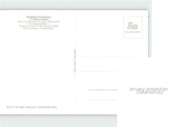 72037102 BADEN-BADEN BW Waldhotel Fischkultur postalisch nicht gelaufen KatCode: 11110008211000