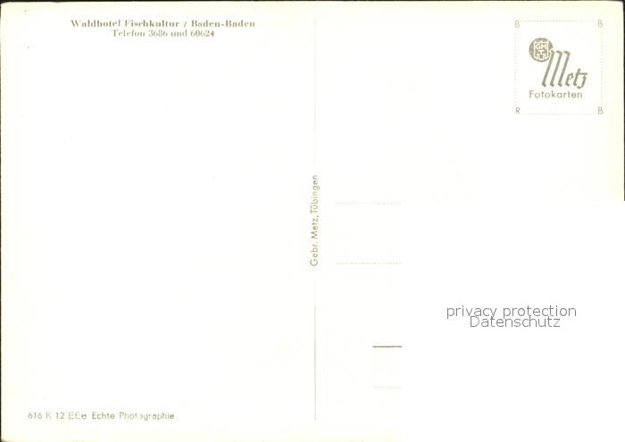 72033621 BADEN-BADEN BW Waldhotel Fischkultur postalisch nicht gelaufen Erhaltung siehe scans KatCode: 11110008211000