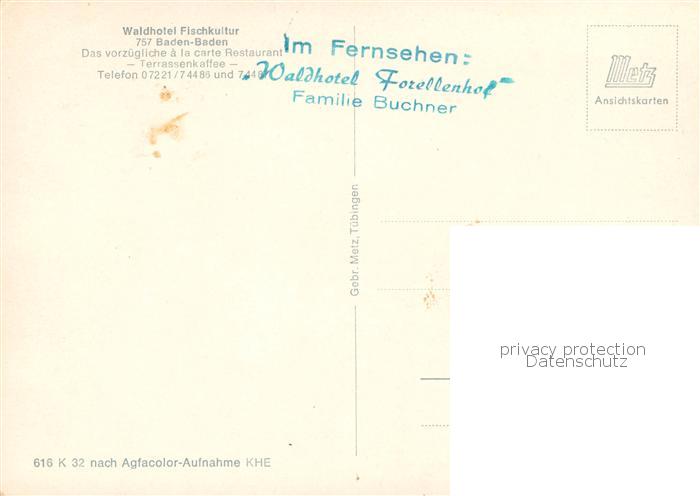73835208 BADEN-BADEN BW Waldhotel Fischkultur postalisch nicht gelaufen Erhaltung siehe scans [FriedD77] Frie Katcode 11110008211000