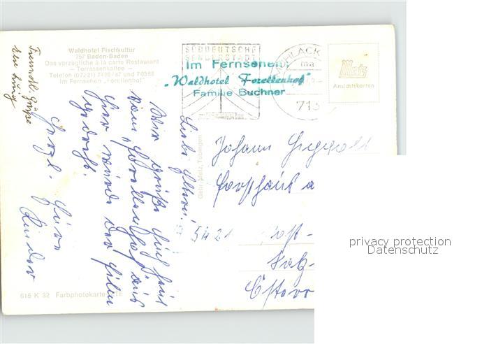 72432070 BADEN-BADEN BW Waldhotel Fischkultur postalisch nicht gelaufen Erhaltung siehe scans KatCode: 11110008211000