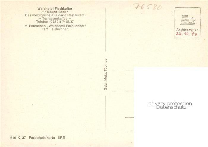 73865657 BADEN-BADEN BW Waldhotel Fischkultur Fernsehsendung Waldhotel Forellenhof postalisch nicht gelaufen Fliegeraufnahme Erhaltung siehe scans [FriedD77] Fliegeraufnahme Frie Katcode 11110008211000