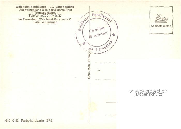 73686589 BADEN-BADEN BW Waldhotel Fischkultur Forellenhof postalisch nicht gelaufen Erhaltung siehe scans [WerneD78] Wern Katcode 11110008211000