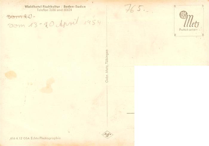 73871350 BADEN-BADEN BW Waldhotel Fischkultur Panorama postalisch nicht gelaufen Erhaltung siehe scans [WerneD78] Wern Katcode 11110008211000