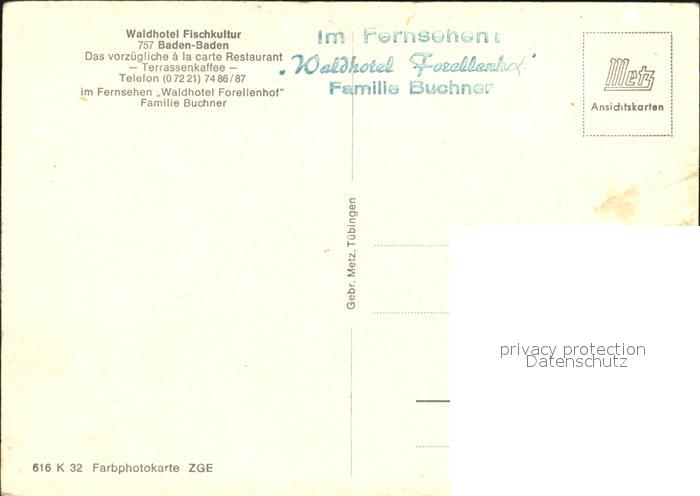 72586584 BADEN-BADEN BW Waldhotel Fischkultur Restaurant postalisch nicht gelaufen Erhaltung siehe scans [AntonD74] KatCode: 11110008211000