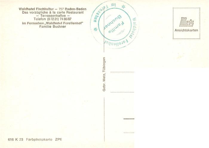 73906696 BADEN-BADEN BW Waldhotel Fischkultur postalisch nicht gelaufen Erhaltung siehe scans [FriedD77] Frie Katcode 11110008211000