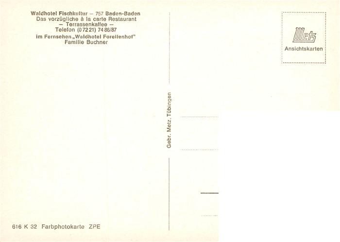 73910817 BADEN-BADEN BW Waldhotel Fischkutlur Terrassenkaffee postalisch nicht gelaufen Erhaltung siehe scans [WerneD78] Wern Katcode 11110008211000
