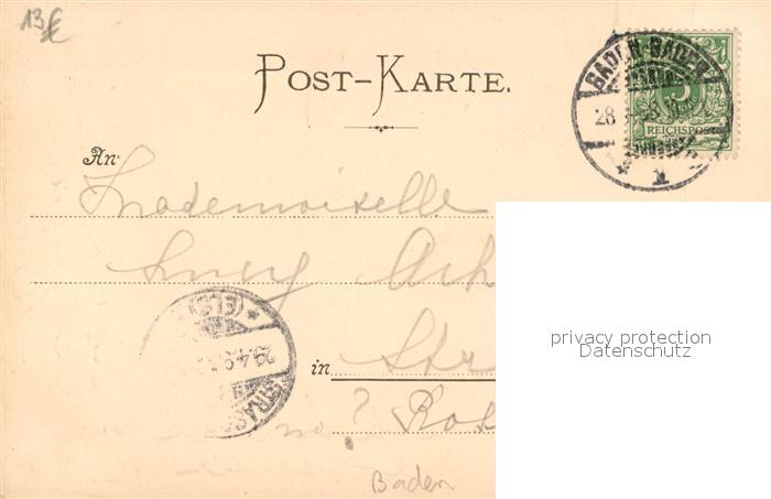43495475 BADEN-BADEN BW Waldsee Mondschein postalisch gelaufen Erhaltung siehe scans [KathaD81] alte Postkarte Kath Katcode 11110008211000