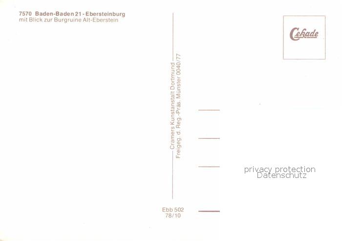72888842 Baden-Baden Fliegeraufnahme Burgruine Alt Eberstein postalisch nicht gelaufen Erhaltung siehe scans [AndreD76] KatCode: 11110008211000