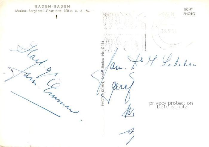 72929490 alte Postkarte Baden-Baden Fliegeraufnahme Merkur Berghotel Gaststaette postalisch gelaufen Erhaltung siehe scans [LiesaD40] KatCode: 11110008211000