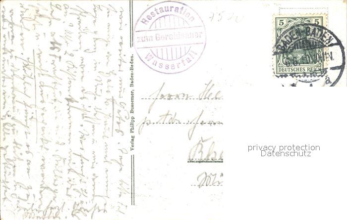 32186089 alte Postkarte Baden-Baden Geroldsauer Wasserfall postalisch gelaufen Erhaltung siehe scans KatCode: 11110008211000