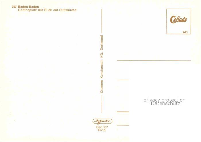 72868601 Baden-Baden Goetheplatz mit Stiftskirche postalisch nicht gelaufen Erhaltung siehe scans [WerneD78] KatCode: 11110008211000