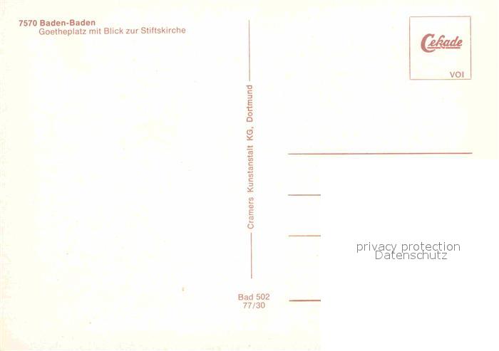 72896959 Baden-Baden Goetheplatz Stiftskirche postalisch nicht gelaufen Erhaltung siehe scans [KathaD81] KatCode: 11110008211000
