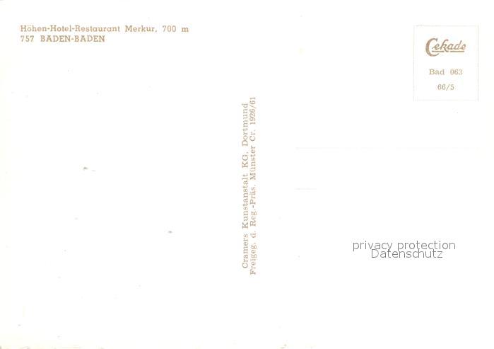 72929761 Baden-Baden Hoehen Hotel Restaurant Merkur postalisch nicht gelaufen Erhaltung siehe scans [KathaD81] KatCode: 11110008211000