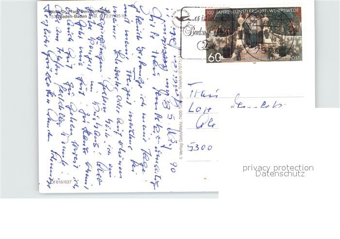alte Postkarte Baden-Baden Klinik Dr. Franz Dengler postalisch gelaufen Erhaltung siehe scans