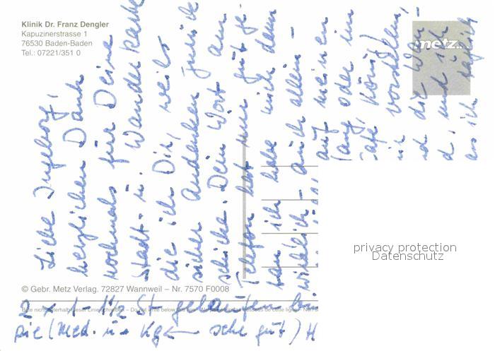 72909037 Baden-Baden Klinik Dr Franz Dengler postalisch nicht gelaufen Erhaltung siehe scans [FriedD77] KatCode: 11110008211000