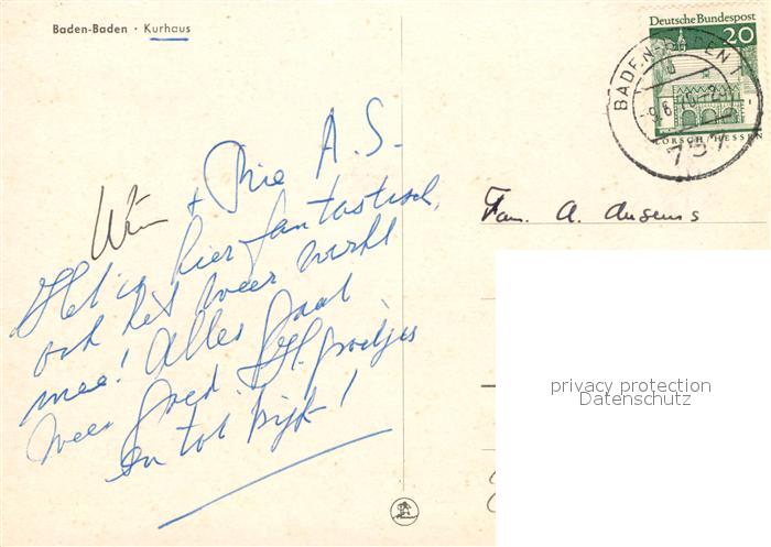 72936549 alte Postkarte Baden-Baden Kurhaus Fahnen postalisch gelaufen Erhaltung siehe scans [FriedD77] KatCode: 11110008211000