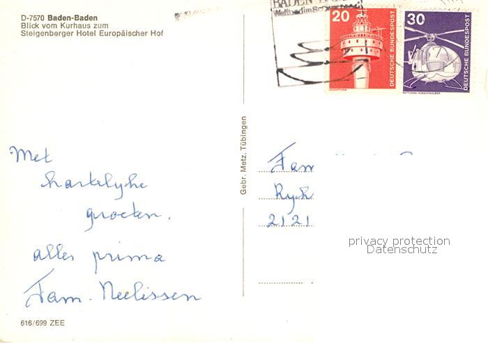 72985198 Baden-Baden Kurhaus zum Steigenberger Hotel Europaeischer Hof postalisch nicht gelaufen Erhaltung siehe scans [LiesaD40] KatCode: 11110008211000